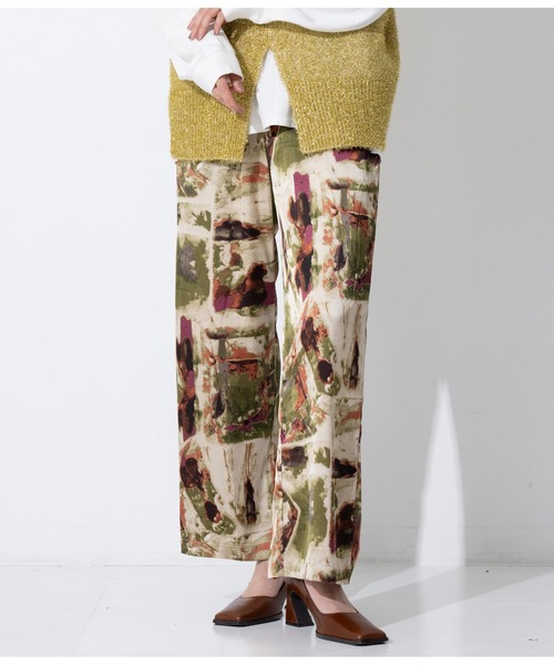 ヴィンテージアートのような大胆なプリント柄が目を惹くパンツ。 ●落ち感のある生地を使用しているので、動いた時の揺れ感を楽しんで頂けます。 ●膝下辺りまでの裏地付きで、ウエストはゴム仕様のためストレスフリーな履き心地。 ●ニュアンスのあるプリント柄のため、シンプルなトップスと合わせたコーデも華やかな印象に。 ●インパクト抜群の柄でも、落ち着いたカラーリングなのでスタイリングに取り入れやすい1着です。 ●ヒールのあるパンプスと合わせたレディな着こなしがおすすめ。 ※ストレッチあり※膝下辺りまで裏地あり※ポケットあり※ウエストゴムあり ※商品のお取扱いに関しましては、商品に付属のアテンションカード、洗濯ネームをご覧ください。 ※モデル着用画像は光の当たり具合で色味が違って見える場合がございます。 ※商品の色味の目安は、商品単体の画像をご参照ください。 【お買いものをお楽しみいただく為に!】 ▼商品のお気に入り登録 完売カラーの再入荷通知や、ラスト1点の通知、セールの通知も受け取ることができます。 ▼ブランドのお気に入り登録 新商品や再入荷など、いち早くブランドのお得な情報を受け取ることができます。