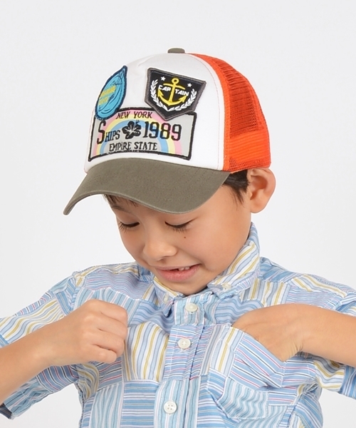 SHIPS KIDSのオリジナルのキャップです。フロントの1面にサーフモチーフのワッペンを3つ付けたインパクトのあるメッシュキャップ。ツバと天ボタンの色を合わせています。帽子はコーディネートのプラスαとして、また、直射日光を防ぐのに欠かせないアイテムです。※S=50㎝、M=52㎝、L=55㎝、がサイズの目安となります。 SHIPS各店へは下記品番にてお問合せください。型番:518-51-0344