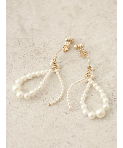 ドロップモチーフやウェーブラインを描くビーズで、華やかに仕上げたイヤリング。 煌めくガラスビーズや樹脂パールも上品なアクセントをプラス。 揺れる動きのあるデザインが視線を集め、スタイリングも印象的に演出してくれます。 デートや女子会などにシーンにもぴったりの大人可愛いアイテムです。 ●製品寸法: F:たて約6.5cm よこ約2cm 備考: