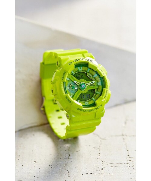 「絶対に壊れない時計を作りたい。」時計とは貴重品であり、宝飾品と同様に丁寧に扱われていた時代に、その常識を覆す発想で開発がスタート。10年間ときを刻み、10気圧以上の防水性能をもち、10mの落下衝撃に耐えるという「トリプル10」の開発思想のもと、1年半以上の試行錯誤の上、モジュールを点で支える中空構造を生み出し、耐衝撃構造を持つ時計として誕生。Gは「Gravity(重力)」を意味し、重力の衝撃に耐える時計「G-SHOCK」と命名された。