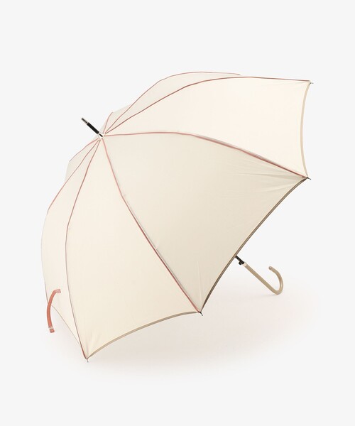 配色のパイピングがアクセントになった長傘です。主張しすぎない品のあるデザインで、幅広い年代の方にご愛用いただけます。片手でも開きやすいジャンプタイプを採用。親骨58cmの大きめサイズで、体をすっぽりと包み込んでくれるのがうれしいところです。骨組みには風に強く壊れにくいグラスファイバーを使用しており、スチール製に比べて軽いので持っているときの腕への負担も軽減してくれます。ハンドルは女性が持ちやすい細めの設計にしました。同じシリーズの折りたたみ傘もご用意しているので、合わせて使うのもおすすめですよ。全長84cm/親骨58cm/直径97cm