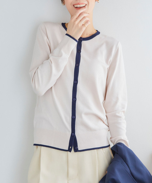 バイカラーで1枚でもサマになる オンオフ着まわせる機能性◎な万能ニット【嬉しい4つの機能】・おうち洗濯OK お手入れも簡単♪・静電気が起こりにくい◎・UVカット 紫外線遮光率90%以上!日焼け対策にも・毛玉になりにくい【デザイン】・ジャストサイズシルエットできちんと感もあるデザイン。・バイカラーデザインでシンプルだけど目を惹くポイントに◎。・ボタンを閉めてトップスとしても良し、羽織やワンピースの上から肩掛けしても良し。マルチに着こなしていただけます♪・裏面にストレッチ糸を使用し、締め付け感のない快適な着心地。・目の詰まった編み目でなめらかな表面感に。・インナーの上から1枚で着てもチクチクしないのが嬉しい◎。【コーディネート】■ONコーデ・プリーツスカートやスラックスと合わせてきれいめコーデに。・ジャケットを羽織っても◎■OFFコーデ・デニムでカジュアルさをプラスすればデイリー使いにもぴったり♪・ワイドシルエットのボトムスとも相性抜群。【カラー展開】チャコールオフベージュ【サイズ展開】MサイズLサイズモデル身長:168cm着用サイズ:Mサイズ【洗濯・取り扱い】洗濯:ネットを使用して洗濯可能アイロン:アイロン可乾燥:タンブル乾燥不可-------------------------------------透け感:なし伸縮性:あり厚み:普通--------------------------------------※撮影時のライティング、ご覧になっているモニター・PC環境により実際の商品と色味が異なって見える場合がございます。ご了承の上お買い求め下さい。