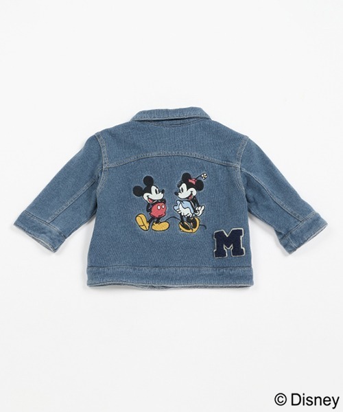 ミッキーマウスとミニーマウスのデザインがバックスタイルをおしゃれに見せてくれるデニムジャケットです。「M」はサガラワッペンでもこもことした風合いに仕上げました。肌当たりの良いコットン素材なので、薄手インナーに羽織っても快適に着用できるのが魅力です。内側にはお名前を記入できるタグつき。【透け感】透けない【生地の厚さ】普通【伸縮性】あり【裏地】なし【ポケット】あり◎キッズサイズ商品番号:9533301商品名:【Disney/リンク】デニムジャケットサイズ:S(80-90)~L(120-130)◎大人サイズ商品番号:3333301商品名:【LIEN】【Disney/リンク】デニムジャケットサイズ:F