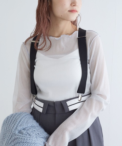 レイヤードスタイルで◎なアイテム ▼デザイン ・トレンドの透け感のあるトップス ・ラメでキラキラとした高級感があります ・メローデザインで女性らしい印象を与えます ・インナーとしてもアウターとしても使える ・薄い素材なので、着まわしやすく長い期間で着用できます ▼コーディネート メッシュ素材で透け感があるのでTシャツのインナーなどにしてレイヤードスタイルで着まわすと可愛いです。キラキラとした素材なので、フェミニンな印象なので、スカートアイテムと相性が良いです。 -------------------- 裏地:なし 透け感:あり 厚さ:薄め 伸縮性:あり 洗濯方法:手洗い可 -------------------- ※商品の色は着用写真ではなく、商品写真をご参照ください。また、可能な限り実物に近いカラーにて掲載しておりますが、ご使用のパソコンおよび携帯電話の閲覧環境によっては、実際の色味と異なって見える場合がございます。予めご了承ください。 ※商品サンプルにて撮影しております。若干の仕様変更が生じる場合がございます。 【お買いものにおすすめの便利機能!】 ★商品のお気に入り登録 完売カラーの再入荷の時や、ラスト1点の時、セールになった時にお知らせします。 ★ブランドのお気に入り登録 商品や再入荷、セール情報など、いち早くブランドのお得な情報を受け取ることができます。 ぜひご活用ください!