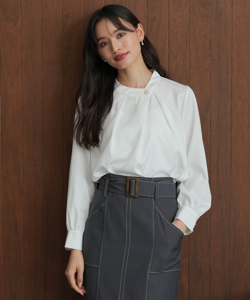 【微光沢な生地で高見えなきれいめブラウス♪】 アシンメトリーなネックと短めな丈がポイントのブラウスです。 襟元のタック使いが抜け感もあり、女性らしく上品な印象に仕上がります。 しっかりとした、透けにくい微光沢感のある生地がクラスアップした印象に仕上がります。 ベーシックかつキレイめなので、オフィススタイルにはもちろん、ディナーや会食などのシーンにもぴったりです◎ 短丈なので、パンツを合わせたOUT STYLEもお楽しみ頂けます。 【TRUDEA(トルディア)】by Astoria(アストリア) 毎日着るものだからこそ素材や着心地にこだわりを! 洗練されたデザインに程よいトレンド感をMIXした働く女性のワードロープを提案します。 ベーシックなデザインなので、通勤やオフィスでのお仕事スタイルおすすめです。 また、就職活動やセレモニーなどオケージョンシーンにも◎ ビジネスなどのオンスタイルや、コーディネートするアイテム次第で、きちんと感を出しながらオフィスカジュアルやオフスタイルにも◎ ◆《お気に入り登録》でお得な情報を◆ ・「商品のお気に入り登録」 再入荷、ラスト1点、セール情報などの通知も受け取ることができます。 ・「ブランドのお気に入り登録」 新商品や再入荷など、ブランドのお得な情報を受け取ることができます。