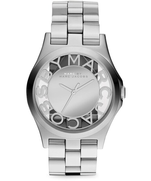 No matter which way this watch's hands point, it's always time for some MARC by Marc Jacobs.Stainless steel case, 40mm. Stainless steel bracelet, 20mm. Round mineral crystal window. Logo detail and letter markers on mirrored dial. Three-hand quartz movement. Water resistant to 5 ATM. Deployant clasp. Imported.