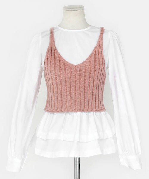 ニット素材のビスチェとラウンドネックのブラウスのセットアイテムです!もちろんバラバラで着用することもできるので、お得感満載。ブラウスはペプラムデザインになっていて、女性らしい印象です。 ※WEARに記載してある金額と、DHOLIC通販サイトに記載してある金額にシステム都合上誤差がございますが、正しい金額はDHOLIC通販サイトの方です。