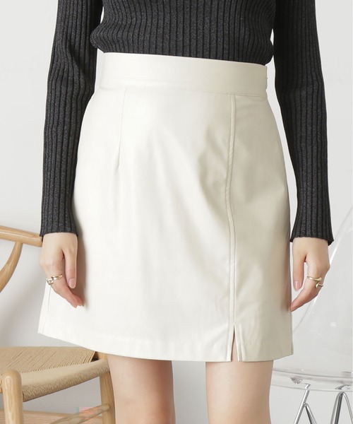 秋らしさ抜群なフェイクレザーミニスカート。<デザイン> 裾に向かって程よく広がり、とてもきれいなミニ丈のシルエットです。 左裾にはアシンメトリーなミニスリットを入れ、シンプルながらもワンテク効いたデザインがポイント。 ややツヤ感をもつフェイクレザーが高見えし、どんなトップスとも合わせやすく、ロングシーズン着回しが効くアイテムです。 <素材> ■透け感:なし ■生地の厚さ:普通 ■裏地:あり ■伸縮性:なし ■光沢:ややあり ■シルエット:スタンダード ※モデルの着用画像の場合、光の当たり具合により、実際の色味と異なって見えることがございます。色味は、商品単体の画像をご参照ください。 ------------------------------------------------------ ◆商品のお気に入り登録◆ お気に入りアイテムの値下げ・再入荷・在庫1点などの通知を受け取ることができます。 ◆ブランドのお気に入り登録◆ 新商品や再入荷、セール、クーポン配布などお得な情報を受け取ることができます。 ------------------------------------------------------ ※ご注文いただいた予約商品のお届け時期の確認は、注文履歴ページより行えます。