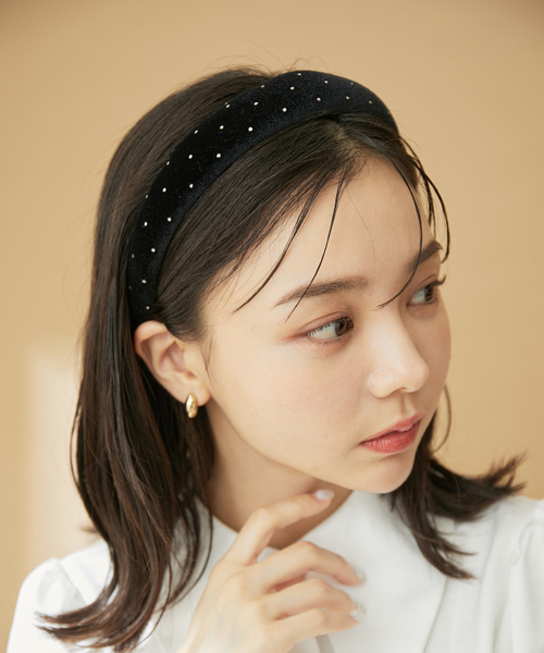 着けるだけで華やかな印象になるカチューシャ【デザイン・シルエット】メタルドットが可愛すぎる主役級のカチューシャ。ベロア生地で使いやすく、柔らかいテンションで着用しやすいのが特徴です。太めなのでヘアアレンジのアクセントにもぴったりです。【カラー】ゴールドとシルバーの2色展開。どちらもベロア地はブラックカラーです。※画像の商品はサンプルです。 実際の商品と仕様、加工、サイズが若干異なる場合がございます。