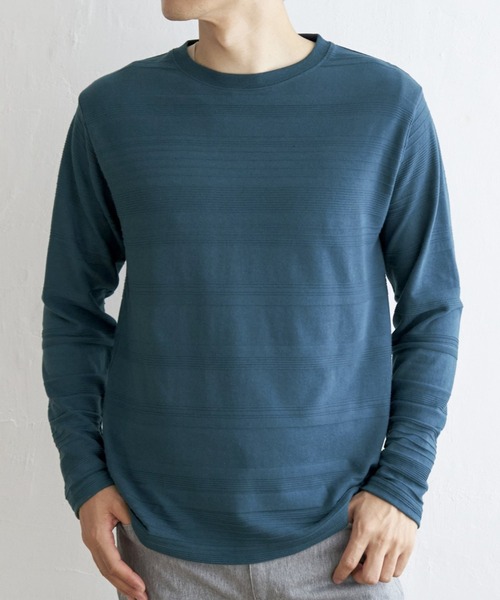 """横うねの表情が特徴的なリップル地を使用した長袖Tシャツ。 生地の凹凸感によるボーダー柄は、シンプルでありながらさり気なく表情のある、まさに大人にぴったりなデザインです。 【素材】 ランダムに配置された凹凸感のあるボーダー。 【デザイン】 凹凸のある地柄のランダムボーダーTシャツです。 サイズ感・・・着回しのきくレギュラーサイズ。 【ikkaポイント】 シンプルな長袖のクルーネックTシャツですが、生地の表面に凹凸のある地柄のランダムボーダーが特徴。 定番カラーのホワイトとブラックに加えて、アッシュグレーとグリーンが ikka らしい色合いです。 ★《お気に入り登録》でお得な情報がいっぱい★ ・「商品のお気に入り登録」で再入荷通知や、ラスト1点の通知、セール通知も受け取ることができます。 ・「ブランドのお気に入り登録」で新商品や再入荷など、お得な情報を受け取ることができます! ※ご覧のモニター環境により、画像の色味と多少異なる場合がございます。 ※他のキャンペーンにより、期間中に価格が変動する場合があります。 ※セールは予告なく終了させていただく場合もあります。"""