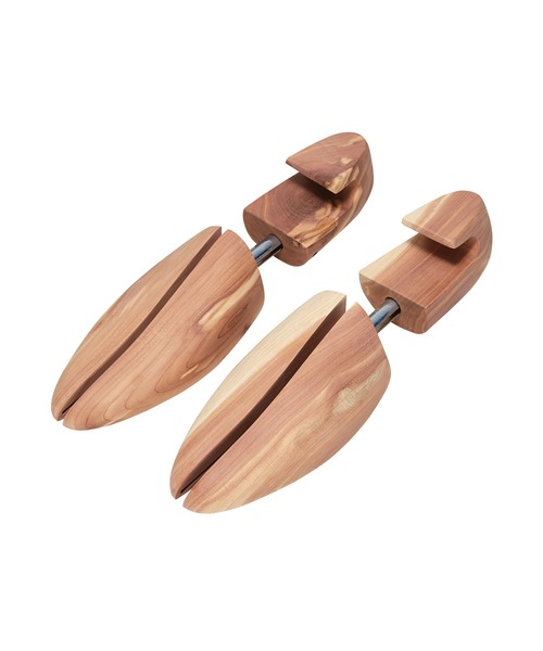 防虫・消臭効果があると言われ欧米で昔から使われているレッドシダーを使いました。足に近い形の甲高になっています。香り成分が結晶化した白い粉が本体に付着している場合があります。乾いた布などで拭いてからご使用ください。 商品仕様 重量(梱包材含む) : 約580g セット内訳 : 本製品のかかと部分の可動域は上に90度、下に90度(合わせて180度)となっています。また真ん中の金具部分を伸縮させることで25~28cmの靴に対応いたします。 お取扱い上のご注意 : 【セット方法】左右で形が違います。かかと部のネジ穴が内側になるようにセットしてください。 お取扱い上のご注意2 : 使用上の注意 お取扱い上のご注意3 : ●靴のデザインによっては適応サイズ内であっても入らない場合があります。 お取扱い上のご注意4 : ●濡れた靴へ使用しないでください。 お取扱い上のご注意5 : 色移りするおそれがあります。 お取扱い上のご注意6 : ●香り成分が結晶化した白い粉や、製造工程で出る木粉が本体に付着している場合があります。乾いた布などで拭いてからご使用ください。 お取扱い上のご注意7 : ●天然の素材を使用しているため、色のバラツキがあります。 お取扱い上のご注意8 : ●香りが弱まりましたら表面をサンドペーパーで削ってください。その後、乾いた布などで拭いてからご使用ください。