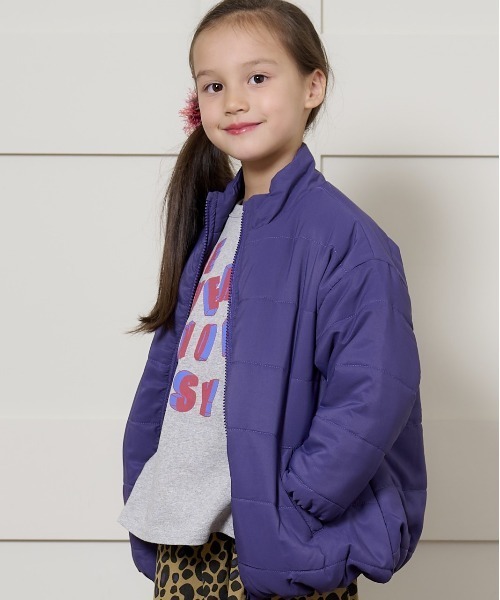 【BIG FIELD】 マーキーズの2023年秋冬キルトシリーズ! こちらは、スタンドカラーキルトジャケットです。 ベーシックなシルエットの使いやすいアウター。 ジップでの開閉式なので、お子様ご自身での着脱もしやすい! 裾はゴム仕様になっていて、冷たい風が入り込むのを防いでくれます。 軽くて暖かいキルト素材は、かさばらず保温性も◎ オーバーサイズでごわごわせずに、ノンストレスで着られます。 お外遊びなどのデイリー使いにはもちろん。。。 お手頃価格なので、色違いでお持ち頂いてコーデの幅を広げて頂けます♪ カラーは全4色ご用意しています。 ◆両サイドにポケット付き ■モデル着用アイテム ・ツイルマチツキテーパードパンツ:0000132021 ・ショートトップスドッキングop:0010932008 ・フリルサスペンダーパンツ:0000232005 ・コールテンタックロングパンツ:0110132007 ・裏起毛テレコフルタケレギンス:0040132001