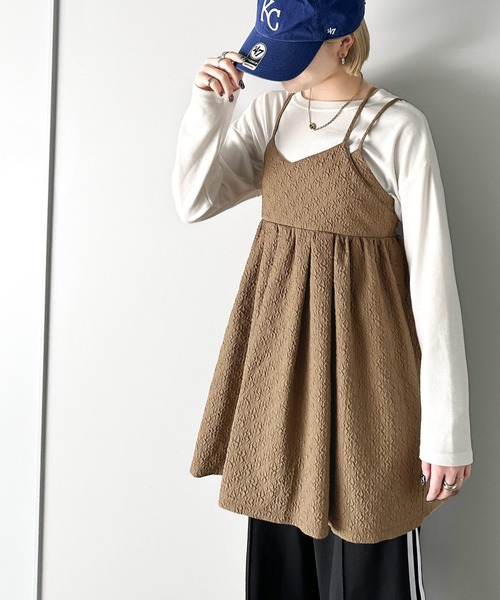 凹凸感のあるジャガード生地で楽しむ、華やかコーデ。 バックレースアップがお洒落ゴコロくすぐる、大人のレイヤードキャミワンピース。 カジュアルなのにどこかエレガントさが漂う、ふんわりシルエットが大人可愛いミニワンピ。 立体感のあるエンボス入りジャガード素材で、女性らしい柔らかな印象に。 後ろ姿まで抜かりなくお洒落見えするバックレースアップや、胸元のアシメデザインも魅力。 こだわりのディティールがぎゅっと凝縮された、主役級アイテムです♪ ■point ・アシンメトリー肩紐 ・レースアップ仕様 ・ウエストギャザー ■detail レイヤード風のアシンメトリーデザインが目を引くティアードキャミソールワンピ。 レディ感をたっぷりのバックレースアップで程よい抜け感が叶う、今年らしいデザインに仕上げました! ウエストは後ろゴムになっているので、ニットと着合わせても◎ デコルテ周りを綺麗に魅せる肩ひもと胸元の切り替えデザインもこだわりポイント♪ 肩紐は調節機能付きなので、ワンピースとして単品で着てもインナーと合わせてもお好みの長さに調節できます。 立体感のあるふんわりとしたシルエットで、着るだけで愛されスタイルが完成! 細かなディテールまでこだわった、とびきりフェミニンなitemです♪ ■fabric トレンドの表面感あるエンボス素材を使用。 たっぷり入ったギャザーがはり感ある素材のため、しっかりシルエットを出してくれるので着やせ効果も◎ …………………… 透け感:ややあり(ホワイト) 厚さ:普通 伸縮性:なし 裏地:なし ポケット:なし 洗濯方法:手洗い可 …………………… ※詳しいお手入れ方法は商品タグをご参照ください。 ■coordinate エンボス加工を施した表情豊かなジャガード生地なので、着るだけでお洒落見え間違いナシの1枚! レディライクなディテールだから、あえてデニムやTシャツと合わせてカジュアルダウンさせれば、こなれ感のある大人コーデに◎ ミニワンピとして着たり、ショートパンツやハーフパンツ、ブーツと合わせて今年っぽく着るのもおすすめ。 インナーをきれいめのブラウスやボリューム袖のトップスにすれば、よりエレガントさのアップしたフェミニンコーデを楽しめます! お尻が隠れる長めの丈感で、テーパードパンツやタイトスカートとも好相性です。 あえてメンズライクなスニーカーやキャップなど、スポーティーなアイテムとの組み合わせもばっちりキマル! カジュアルにもレディライクなスタイリングにも合わせやすい、一着です。 【mily biletとは】 "もっと自由に もっとかわいく もっと自分を好きになる" そんな願いを叶えるブランド。 トレンド×ベーシックに「ガーリー」をmixした、ちょっぴり甘いがコンセプト。 今欲しいファッションを手軽に楽しめて、 思わずシェアしたくなる、ときめくアイテムを提案します。 ご覧のモニター環境により、画像の色味と多少異なる場合がございます。 ★《お気に入り登録》でお得な情報がいっぱい★ ・「商品のお気に入り登録」で再入荷通知や、ラストの通知、セール通知も受け取ることができます。 ・「ブランドのお気に入り登録」で新商品や再入荷など、お得な情報を受け取ることができます!