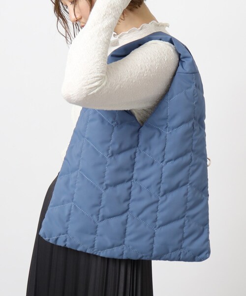 【デザイン】 トレンドのトライアングル型のクリ手にふっくらしたキルティングを施したトートバッグです。 両サイドのリング引手のポケットがついていますので、貴重品や、スマホを入れるのに便利です。 【素材】 光沢感のないポリエステル生地 ※ポケット数:外側×2、内側×3 【A4ファイル収納可】 店舗へのお問い合わせ商品番号:769-07052 ●製品寸法: 00:高さ29.5cm 幅(上部)33cm 幅(下部)36.5cm マチ10cm 持ち手上がり20cm 備考:重量:約245g(サンプル重量)