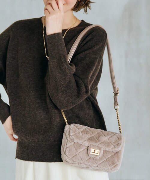 「美人百花」11月号(10月12日(木)発売)の「アラサーのためのプチプラ攻略」に掲載された商品です。 【デザイン】 トレンドのミニサイズのショルダーバッグです。 フラップにヒネリ金具とショルダーのサイドのチェーン使いがクラシックな印象になりスタイリングのポイントになります。 ツイード素材とエコファーにキルトを施した2素材の展開です。 ※ポケット数:内側×2 店舗へのお問い合わせ商品番号:769-07065 ●製品寸法: 00:高さ14.5cm 幅(上部)20cm 幅(下部)18.5cm マチ6.5cm ショルダー対応サイズ82~139cm 備考:重量:約250g(サンプル重量)