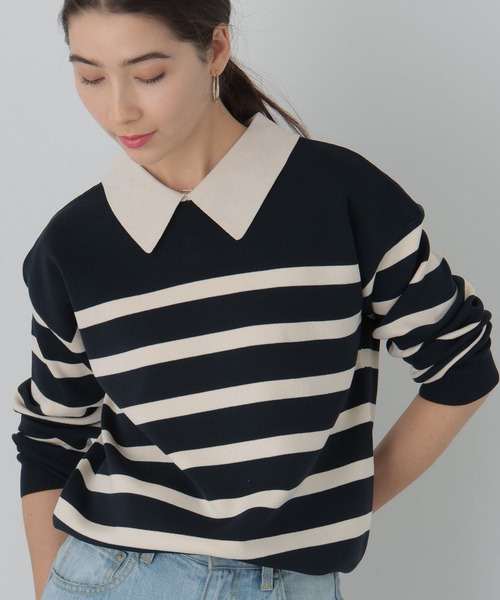 ■大好評につき再入荷!&24AW新色カラーも登場♪■\人気シリーズの襟付きニットの長袖バージョン/前後2WAYで着られる!バックスタイルも手を抜かない、大人のフェミニンニットバックのゴールドボタンがポイントの襟付きニット。フェミニンでトラッドな印象を与えてくれるハイゲージニットです。バックのゴールドボタンは上品な印象を与えてくれ、バックスタイルも手を抜かないデザイン!ウエストに自然とフィットする、バランスの取りやすいシルエットも魅力の一つ。前後2WAY仕様なので、雰囲気を変えても着用可能です♪STYLINGデニム合わせのカジュアルな着こなしが、甘すぎず今っぽい。ボトムにインしなくてもきまるシルエットなので、ワイドなボトムとの相性も抜群。フレアスカートで女性らしく着こなせば、ちょっとしたお出かけにもぴったりです。▽NEW COLOR DEBUT24AW新色の「ダークブラウン」「グリーン」が追加しました!▽襟付きニットシリーズはこちら■襟付き袖タック5分袖ニット(ブランド品番#109356)■襟付きGLDボタンフレンチスリーブニット(ブランド品番#121559)■襟付きゴールドボタン5分袖ニット(ブランド品番#977596)■襟付きゴールドボタン長袖ニット(ブランド品番#977603)▼ピックアップレビュー※自社サイトに頂いたお客様のレビューをご紹介します・デザイン可愛すぎます!ちょっと重さのある生地感ですが、何にでもあわせられそう!・ボーダーに襟が付いててカジュアルに着こなせます。長く着ることができそうなデザインが気に入りました。・レトロっぽいデザインで可愛いです。生地もしっかりしていて洗っても型崩れしにくそうなので沢山着たいと思います。ウエストの部分が締まっているのでボトムにインしなくてもスッキリ見えるところも良いと思います!・ブラウンとネイビーの2色購入しました。前後2wayで雰囲気が変わるのでカジュアルにも清楚にも着こなせて重宝しそうです。滑らかで柔らかく、目のしっかり詰まったニット素材で伸びも良いのでストレスフリーの着用感でした。丈も長すぎず短すぎずパンツにもスカートにも合わせやすいです。・・・・・・・・・透け感:やや透ける伸縮性:あり生地の厚さ:普通裏地:なし■手洗い可ボーダー00で計測しています。※こちらは参考情報となります。カラーにより多少の誤差がございます。・・・・・・・・・【SALOON】―Effortless chic―心地よい素材でその時々の気分をカジュアルスタイルで表現、BASICアイテムをベースに様々な場面に活躍できるファッションを。”今の自分”と”新たな自分” これまでも、これからも素敵な自分に。をテーマにしたブランドです。お買い物をお得にもっと楽しく!上手な活用方法>>>♡商品のお気に入り登録▼完売カラーの再入荷通知や、ラスト1点の通知、プライスダウンしたセール通知も受け取ることができます!♡ブランドのお気に入り登録▼新作や再入荷等、いち早くブランドのお得な情報を受け取ることができます。【ご注意】・屋外の光や照明の当たり具合で、実際の商品の色味とカラー別画像の色味に若干の違いが発生する場合がございます。 詳細画像と併せてご確認の上、ご注文いただきますようお願い致します。・サンプルにて撮影をしておりますので、実際の商品とは色味・仕様や加工・サイズ等が若干異なる場合がございます。予めご了承くださいませ。