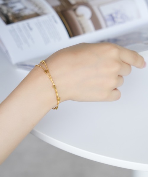 小ぶりのスクエアビーズがポイントのブレスレットです。 華奢な2連のチェーンとさりげなく輝くスクエアビーズが手元を綺麗に魅せてくれます♪ どんなお洋服にも合うシンプルなデザインは、コーディネートのワンポイントにおすすめの優秀アイテム◎ 華奢なデザインなので、お手持ちのブレスレットと重ね付けするのもおすすめ! ■サージカルステンレスとは サージカル=医療用の、 ステンレススティール=錆びない鋼鉄、 という2つの言葉を合わせて作られた造語です。 腐食しにくい素材で、医療用のメスなどの医療用器具や、ハサミなどにも使われています。 ・水に強いので、お風呂、プール、海でも使用可能 ・汚れ・変色・サビ・キズにも強いのでお手入れが簡単 ・金属アレルギーの方にも比較的安心して使用可能 ・軽量で、丈夫なのでデイリーユースに最適 金属の中にはシルバーのように空気や汗によって酸化して変色したり、鉄のように錆びたりするものもありますが、 サージカルステンレスの場合は腐食や熱などにも強いため、長く着用していても老朽化しにくいというメリットがあります。 また耐久性も高く、表面に傷がつきにくいというのも特徴です。 サージカルステンレスはアレルギーが起きにくい素材ではありますが すべての方にアレルギーが起きないことをお約束するものではありません。 その時の体調や個人差がございますので、ご使用時に異常を感じた場合は直ちに使用を中止し専門医にご相談下さい。 【IAMUSE】 「自分自身を楽しませるような1着を」 特別な1着もいいけれど、毎日着たい1着を目指して。 女性の毎日の〝楽しみ“に寄り添い、溶け込めるアイテムを提案いたします。 シンプルながらもサイジングやテキスタイルはトレンド感のあるスタイルに。 着回しのしやすいアイテムを提供いたします。 ■お気に入り登録について 完売カラーの再入荷通知や、完売間近の通知、セールの通知を受け取ることができます。 ■ブランドお気に入り登録について 新商品や再入荷など、いち早くブランドのお得な情報を受け取ることができます。 取扱注意事項 ※サイズは、測定方法と測定者によって多少の誤差がありますのでご了承下さい。また体型によって、サイズ感に個人差がございます。(平置き採寸) ※商品によってはシワがつきやすく、畳ジワや折りジワなどが強く出る場合がございます。 ※生地の素材や染色により、においが気になる場合がございます。 ※レースやシアーアイテムなどは繊細な素材を使用しているため、摩擦を避けお取り扱いにご注意下さい。 ※お洗濯の際には、洗濯専用ネットをご使用の上、色移りを避けるために個別での洗濯ををお勧め致します。 ※着用、お取り扱いの際は、商品についている品質表示とアテンションを必ずご確認下さい。 ※掲載画像は撮影環境により実際の色味と異なる場合がございます。 ※生産時期によって若干の色味、原産国が異なる場合がございますが、品質には変わりございませんので予めご了承ください。