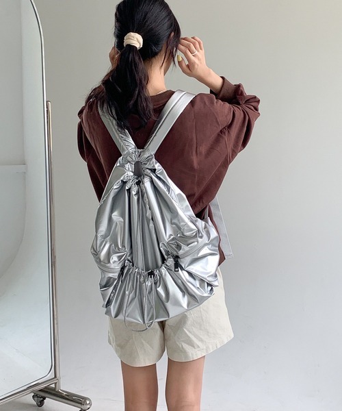 【DESIGN】・ドローストリングが特徴的なリュック。・メイン部分とサイド・フロントに収納可能。・シックなブラックとトレンドカラーのシルバーで コーデにアクセントを加えます。・飾らないシンプルなデザインで幅広く合わせていただけます。【STYLE】・ヴィンテージデニムデニムやバギーデニムカーゴパンツ、 スウェットパンツ、ミニスカートを合わせた カジュアルスタイルはオススメです。・人気のシアーブラウスやニットポロシャツ、 リボントップスやサマーニット を合わせたトレンドスタイルも◎・キャップやバケットハット合わせもGOOD!【Chick/チック】「Chickは、上品、おしゃれ。若い男性・女性。を意味しており、20代~30代をターゲットに、トレンドを取り入れた最新のファッションを手頃な価格で提供しています。手軽に最新のトレンドを取り入れられる場所としてエイジレスに提案していきます」。【ROOPTOKYO ZOZOTOWN お買い物ガイド】▼商品をお気に入り登録!完売商品の再入荷やラスト1点の通知、セール開始時にお知らせ!▼"ROOPTOKYO(ループトーキョー)"をお気に入りブランドに登録!新商品や再入荷など、ブランド最新情報をいち早くお知らせ!是非、ご活用いただきお買い物をお楽しみください!