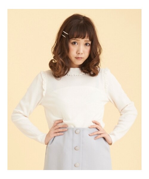 メッシュの様な凹凸があるワッフル生地に、首元のビジューや肩フリルがcuteに仕上がったプルオーバー。程よいフィット感が女の子らしいシルエットを演出し、これからの季節に似合うカラーリングやボーダー柄などの豊富なバリエーションも魅力のポイントです◎ニットと重ねても1枚で着てもガーリーなコーディネートが決まります♪*摩擦や水濡れによる色落ち・色移りにご注意下さい。*デリケートな素材を使用しておりますのでお取扱いにご注意下さい。