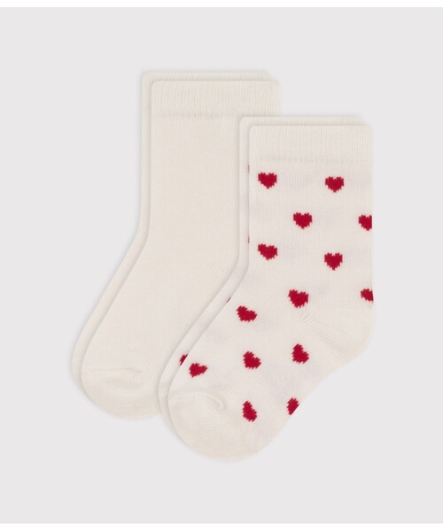 人気のハート柄と清潔感のあるピュアホワイトで揃えたソックス2枚セットです。やわらかさと伸縮性を兼ね備えるストレッチ素材を使用した、快適な履き心地に定評があります。何足あっても嬉しいアイテムは、出産祝いなどのギフトにもおすすめです。
