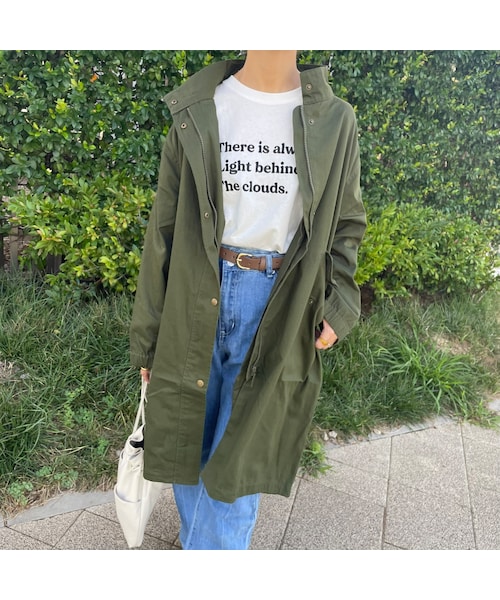 ロング丈がスタイリッシュなこなれアウターが登場! M65ミリタリーテイストのスタンドカラーデザインが今らしい1枚です♪ フィッシュテールデザインに、アンティークゴールドのメタルパーツがポイント! 張りのあるコットン素材で着心地もよく、程よい丈感のロングブルゾンは、デイリーコーデにさっと羽織れ、衿は立ち上げても、倒してもお好みでご着用いただけるアイテムです。 ※モデル身長:161㎝ ▪️カラー カーキ ▪️サイズ M 着丈前:96cm 着丈後ろ:105cm 身幅:65cm 肩幅:55cm 袖丈:52cm 裾幅:70cm ※多少の誤差は予めご了承下さい。 ▪️素材 綿100%