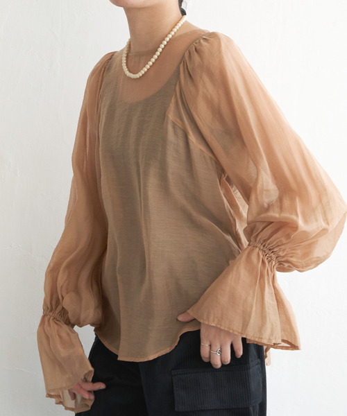 シアー素材の袖フレアブラウス。インナー次第で幅広い季節に着回せます。【素材】ほんのりと透け感のあるシアー素材。【デザイン】袖口にきゅっとギャザーを入れたキャンディースリーブのような袖のデザイン。肩にもギャザーを入れた立体感のあるシルエットです。【おすすめコーディネート】見せるインナーを合わせてレイヤードを楽しんだり、ベストとの重ね着もおすすめです。★Instagramにて近日発売予定のアイテムやルックをご紹介しております。@vence_sharestyle[洗濯方法]洗濯の際はネットを使用してください★《お気に入り登録》でお得な情報がいっぱい★・「商品のお気に入り登録」で再入荷通知や、ラスト1点の通知、セール通知も受け取ることができます。・「ブランドのお気に入り登録」で新商品や再入荷など、お得な情報を受け取ることができます!※ご覧のモニター環境により、画像の色味と多少異なる場合がございます。※他のキャンペーンにより、期間中に価格が変動する場合があります。※セールは予告なく終了させていただく場合もあります。[クリーニング]手洗い可、ドライクリーニング可(F)、ウェットクリーニング(W)