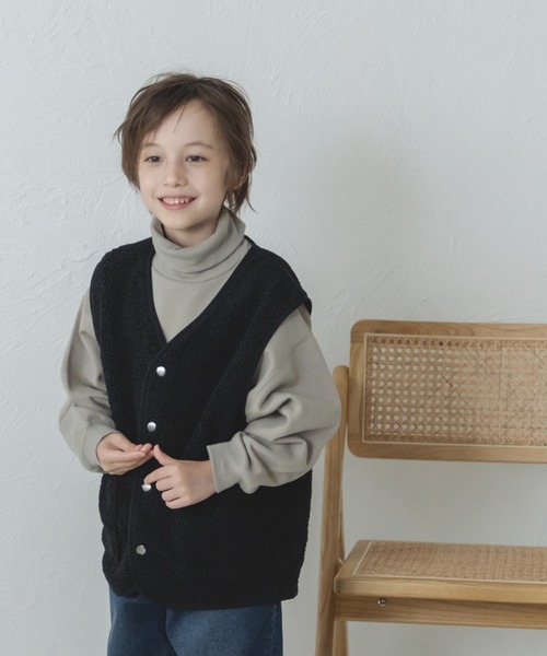 【もこもこボア】 トレンド感のあるルーズシルエットのシープボアベストです。 アンティークなカラーリングのドットボタンがアクセントに。 【スタイリング】 ゆったりとしたシルエットなのでどんなアイテムでもインナーとして着込めます。同じデザインで大人サイズもあるので、親子コーデも楽しめる一枚です。 生産時期により色味が若干異なる場合がございます。ご了承ください。 【ポケット】 あり(両サイド) 【伸縮性】 なし 【透け感】 なし 【クリーニング】 洗濯機洗い可(ネット使用) 【裏地】 なし