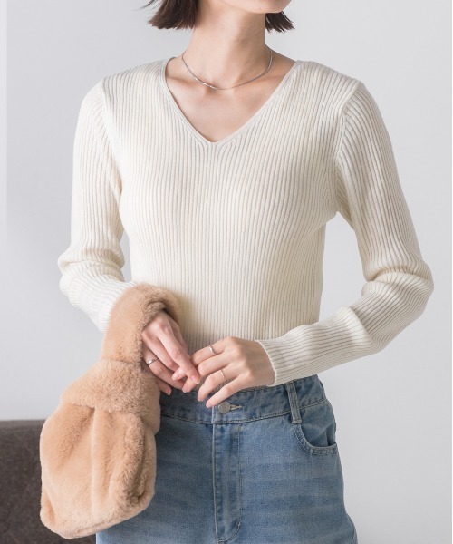 ディテール首元がスッキリ、きれいに見えるVネック重ね着しやすい薄手素材女性らしいシルエットどんなアイテムとも相性抜群のリブニットストロングポイント使いやすいシンプルなデザイン首元がスッキリ見えるので大人女子コーデはおまかせ!シンプルなデザインなので、何枚あっても使える優れものアイテムインしやすい薄手素材説明文女性らしいシルエットが大人女子を演出してくれるシンプルなデザインなので、お出かけはもちろん、お仕事にも着て行けるざっくり感が苦手な方はレースインナーなどとコーデしてレースをちら見せするのもおすすめ細身シルエットなので、タイトスカートなどとコーデすると女性らしさが引き立つアイテム伸縮性あり透け感(オフホワイト)薄手の素材の為透け感が目立つ場合があるのでインナー着用をオススメします透け感(濃色)多少あり洗濯表記【洗濯処理】水温40℃を限度に、手洗いできます【漂白処理】漂白できません【タンブル乾燥】タンブル乾燥禁止です【自然乾燥】日陰で、平干しします【アイロン仕上げ】110℃を限度に、アイロンが使えます【ドライクリーニング】ドライクリーニングはできません【ウエットクリーニング】非常に弱い操作による、ウエットクリーニングができます【洗濯表記説明文】アイロンの際はあて布を使用洗濯ネット使用Attention【お取り扱い上のご注意】・この製品は生地の特性上、洗濯によって多少縮む場合がございますので、ご注意下さい・蛍光増白剤の入っていない洗剤を使用して下さい・水洗いで移染しやすいので、他のものと分けて洗って下さい・濡れたまま重ねたり、丸めたりしないで、形を整えて直ぐに干して下さい・濃色のものは染料の性質上、擦られると色移りすることがありますのでご注意下さい・汗や雨で湿った場合、着用中の摩擦により他の物に色が移る場合があります・洗濯後に多少の型くずれ、斜行(製品がねじれて見える状態)が起きますので、あらかじめご了承下さい・タンブラー乾燥の際は、製品を傷める恐れがありますので、お取り扱いには充分ご注意ください【製品のお取り扱いについて】この製品は、素材の性質上、引っかかりやすい性質をもっております着脱時には下記の点に十分ご注意下さい・引っかかりやすい性質をもっております 着脱時には下記の点に十分ご注意下さい・着脱時にベルト、バッグや周囲の壁など表面の粗いものとの摩擦や引っかかりに注意して下さい・水洗いやクリーニングの際にもネットを使用し、他の物との引っかかりにご注意下さい【注意事項】商品をお安く提供させて頂く為、検品後のアイロン掛けは省略させて頂いております簡易梱包の為、たたみ皺があると思いますが、ご了承ください海外輸入品の為、商品の細部仕様は予告なく変更になる場合がございます