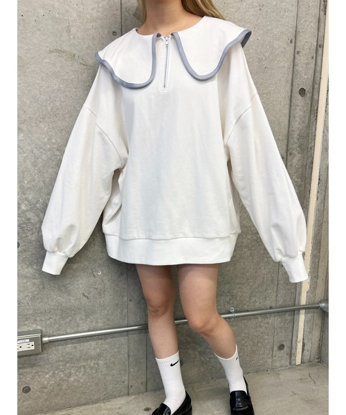 大きな襟でガーリーさをプラスしたマルチに使える一枚ハーフジップで甘くなりすぎず着脱も楽ちん◎ビッグシルエットでゆったりとしたシルエットに楽なのにきちんとおしゃれに見える便利な一枚。■detail&coordinate一枚でワンピース風の着こなしがおすすめ!Iラインのスカートやコンパクトなシルエットのボトムと合わせるとバランスよく仕上がります。ビッグカラーデザインは顔回りをスッキリと見せてくれます。【WC ZOZOTOWN お買い物ガイド】▼商品のお気に入り登録商品ページやブランドTOPの♡をクリックするだけ◎再入荷通知や、ラスト1点の通知、セールの通知をすぐに受け取れます。【商品画像について】・画像はサンプルです。実際の商品と仕様、加工、サイズ、カラーが若干異なる場合がございます。・撮影場所や照明の照射・角度、お使いのモニター環境によりお色味が異なる場合がございます。予めご了承ください。【取り扱い注意事項】・素材の特性上、水や汗で濡れたまま長時間放置することはお避け下さい。・濃色のアイテムは移染の恐れがあるため別洗いにしてください。・アテンションタグを必ずご確認の上、ご使用下さい。・生地の素材上、においが気になる場合がございます。その際は陰干しして頂くと、ほとんど感じられなくなります。【サイズ表記について】・表記しているサイズは、すべてスタッフが採寸した実寸値になっております。・正確なサイズを測るよう心掛けておりますが、採寸用サンプルの実寸値となりますので、 お届けする商品と表記寸法の間に多少の誤差が生じる場合がございます。・商品により±2cm程度サイズに誤差がある場合がございますので、予めご了承ください。