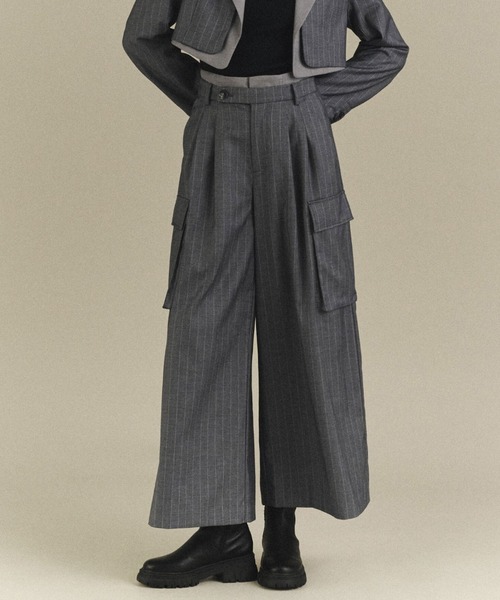 2023秋冬FREE'S MART collection モードでエッジの効いたワンランク上のコレクションライン 〔fabric〕 ストライプと無地の微配色の生地を組み合わせたデザイン。 ポリエステルレーヨンのスーツ地で、きれいな目面の生地です。 〔design&styling〕 ウエストベルトが2枚仕立てになっており、まるでもう1枚パンツを着ているかのようなレイヤード風パンツ。 太めのワイドパンツで、ストリート感のある大きめのパッチポケットでアクセントをつけています。 セットアップ企画の<131-3250004 コレクション レイヤードショート丈ジャケット>とのコーデがおススメです。 ※ルミネエスト店・北千住ルミネ店・ルクア大阪店・EC限定販売商品です。 ■透け感:なし ■生地の厚さ:普通 ■裏地:あり ■伸縮性:なし ■光沢:なし ■シルエット:スタンダード ------------------------------------------------------ ◆商品のお気に入り登録◆ お気に入りアイテムの値下げ・再入荷・在庫1点などの通知を受け取ることができます。 ◆ブランドのお気に入り登録◆ 新商品や再入荷、セール、クーポン配布などお得な情報を受け取ることができます。 ------------------------------------------------------