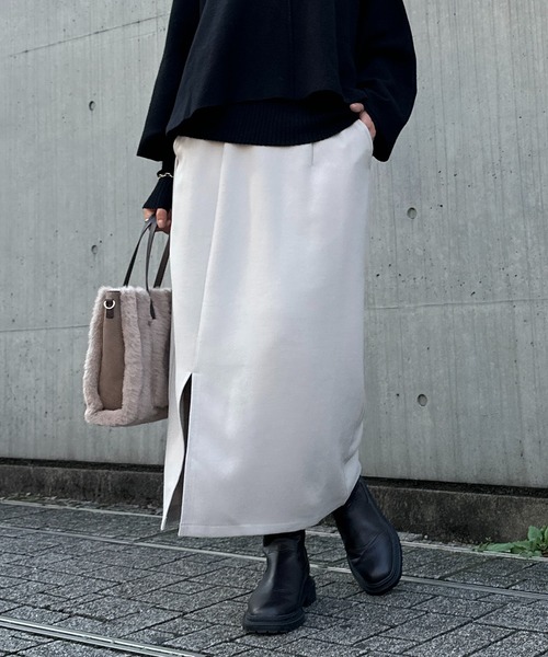 ■2023 AUTUMN & WINTER ITEM■ 抜け感を演出できるスリット入りスカート 商品ポイント ・トレンドのナローシルエットのスカート ・ウエストゴムでイージーな穿き心地 ・ヒップにゆとりがあるので、ボディに張り付かないサイズ感 おすすめコーディネート 同素材で展開しているトップスと合わせたセットアップスタイルがおすすめ ナローシルエットなので、オーバーサイズのトップスと合わせたスタイルも今年トレンドの顔に◎ 素材 ポリエステル62%、レーヨン35%、ポリウレタン3% 洗濯方法:手洗い可 透け感:なし 裏地:なし 伸縮性:ややあり 生地の厚さ:普通 光沢:なし ポケット:あり 【スタッフ着用コメント】 《RINO》 身長:148cm/着用サイズ:F 体型:普通/骨格:ストレート/パーソナルカラー :ブルベ冬 スリット入りのナロースカート♡ 足痩せ効果絶大なので、骨格問わずサマになります 《ゆうき》 身長:152cm/着用サイズ:F 体型:ぽっちゃり/骨格:ストレート/パーソナルカラー :イエベ春 私でも着れちゃうスカート! 長すぎないので低身長さんでも安心して着られます! 《YUI》 身長:149cm/着用サイズ:F 体型:ぽっちゃり/骨格:ウェーブ/パーソナルカラー :イエベ春 149cmの私で着ると足首が出るくらいの長さです。身体のラインは出ずにすっきり着れました。 骨格タイプ ストレート:全体的に立体型で筋肉質。ひざ下はすらっと細め。ボディラインにメリハリがある。 ウェーブ:上半身が薄く、華奢。緩やかな曲線のボディライン。下半身に重心があり女性らしい体型。 ナチュラル:筋肉や脂肪があまり感じられない体型。腰の位置が高く骨や関節が目立ちやすい。 ============================ 【注意点】 ※画像の商品は光の照射や角度、お使いのモニター環境により、 実物と色味が異なる場合がございます。 あらかじめご了承下さいませ。 ============================ 【お買い物をもっと便利に楽しく♪】 『♡』をクリックでお気に入り登録 ・「商品のお気に入り登録」で・・・ ラスト1点や再入荷の通知が届きます。 登録して頂いた商品だけが対象となる、あなただけのタイムセールが開催されることも! ・「ブランドのお気に入り登録」で・・・ 新商品や再入荷など、いち早くブランドのお得な情報を受け取ることができますので、ご登録をおすすめします! ============================