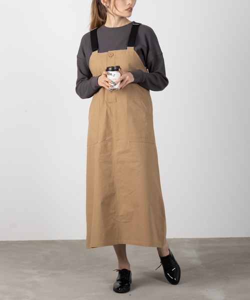 ほどよいミリタリーデザインがかわいいジャンパースカート。 カラーは、ブラック・カーキ・ベージュの3色展開です。 綿100%の素材を使用し、少しゆったりとしたストレートなシルエットです。 張り感のある生地のため身体のラインが出にくいのもうれしいポイント。 スリットが入っているので歩きやすく、肩紐の長さを調節できるので身長に合わせて着用いただけます。 大きめなアウトポケットとボタンがアクセントのシーズンレスで楽しめるアイテムです。 ※ご覧になられているモニター環境や端末により色の見え方に違いがございますので、ご了承ください。 ■モデルサイズ 167cm 53kg B:88/ W:58/ H:85 着用サイズ:M ※商品画像は、ご覧になられているパソコン、ディスプレイ等の設定により、実際の色味とは異なる場合がございます。