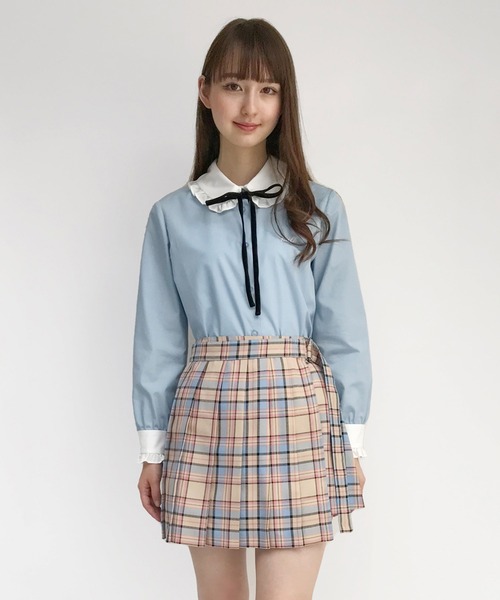 定番のロゴブラウスは細めの別珍リボン付きアーガイルベストとの相性が◎TEDDY CHECK シリーズとのコーディネートもオススメですA,オフB,サックスC,ブラック