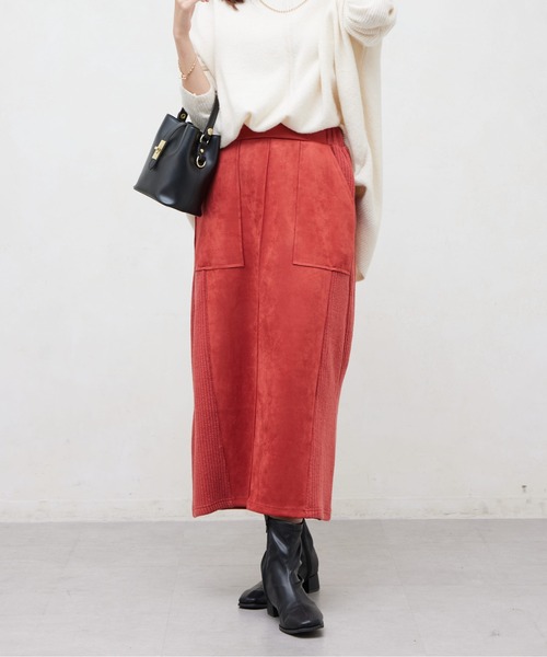 伸縮性抜群!!オフィスにもおすすめきれいめナロースカート ■point スエード生地で柔らかく、伸縮性抜群!!ストレスフリーな 履き心地です。 サイド部分がカットリブの切り替えなので着膨れ感なくすっきりと 着用できます。 きれいめ見えするナロースカート。今季トレンドの丈感です。 ウエストはゴム仕様なので楽に履いて頂けます。 ■coordinate ニットや、シャツに合わせたりGジャンやファーベストなど。 きれいめなアイテムからカジュアルなアイテムまで合わせて頂けます。 ■fabric (本体)ポリエステル95% ポリウレタン5% (別布)ポリエステル95% ポリウレタン5% -------------------------------------------------- 裏地:なし ポケットあり 光沢感:ややあり 伸縮性:あり 生地の厚さ:普通 洗濯方法:手洗い可 -------------------------------------------------- ※商品画像は着用イメージです。 光や角度により、実物と色味が異なる場合がございます。また表示のサイズ感も実物とは若干異なる場合もございますので、ご了承ください。 ※着用、お取り扱いの際は、商品についている品質表示とアテンションタグを必ずご確認ください。 -------------------------------------------------- ♡をクリックでお得な情報をお知らせいたします。 <商品お気に入り登録> お気に入りアイテムのお値下げ・再入荷・在庫ラスト1点など通知を受けることができます。 <ブランドお気に入り登録> Chez toiの新商品・再入荷・SALE・クーポン配布などお得な情報を受けることができます。 -------------------------------------------------- Cheztoi/シェトワ フランス語で「あなたの家」という意味。 自分にまっすぐでそしてしなやかに生きる女性に向けたブランドです。
