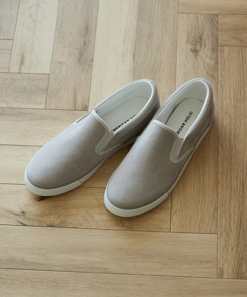 *整履きSHOES* ・クッション性が抜群なインソールで足を包み込む。快適な履き心地でオシャレを楽しめる!そんな欲張りをかなえるSHOES。 ・距骨調整の開発者である志水先生監修のもと、AMERICAN HOLICオリジナルとして開発したインソールを採用しています。 ■デザイン ・昨シーズンから引き続き定番のスリッポン。 ・王道なカジュアルアイテムのスリッポンをすっきりとしたシルエットで作成。 ・季節感のあるスェード素材を使用し、年齢問わず手に取りやすいアイテムに仕上げました。 ■素材 ・毛足の短いスエード調素材 ■カラー ・主張しすぎず様々なコーディネートと馴染みの良いグレーベージュ。 ■機能性 《インソールのメリットについて》 ・立体成型でふっくらとしたクッションインソール。 ※インソールの中敷きは取り外し可能です。 【Point 1】足裏にかかる圧力が分泌され、快適な履き心地。 【Point 2】足裏の凹凸にフィットし、安定感のある歩行をサポート。 ※サンプルにて撮影を行っております。 ●製品寸法: M:ソール23.5cm 幅8.1cm 備考:
