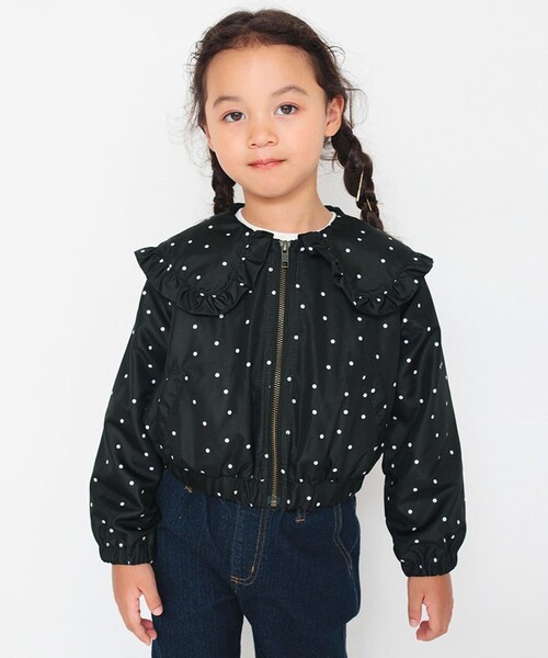 branshes一押しのウィンドブレーカーです。 今年はトレンドのビッグ衿がおしゃれポイントです。 またフリルも◎ お色の展開はラベンダーと黒×白のドットプリントの二色展開です。 通学でも、ちょっとしたお出掛けにも重宝する一枚です。 ----- 透け感:ややあり 伸縮性:あり ※モデル着用写真についてはイメージの為、実際の 商品とカラーや仕様が異なる場合がございますので、 商品画像をご覧ください。 ※商品の色味につきまして、お客様のお使いのPCの モニター環境により実際のカラーと画像の色味が 違って見える場合が御座います。 予めご了承の上、ご注文下さい。 ※店頭・外での撮影画像は光の加減で、 実際の商品より明るく見える場合が御座います。 子ども/子供/こども/子供服/キッズ/ジュニア/男の子/女の子