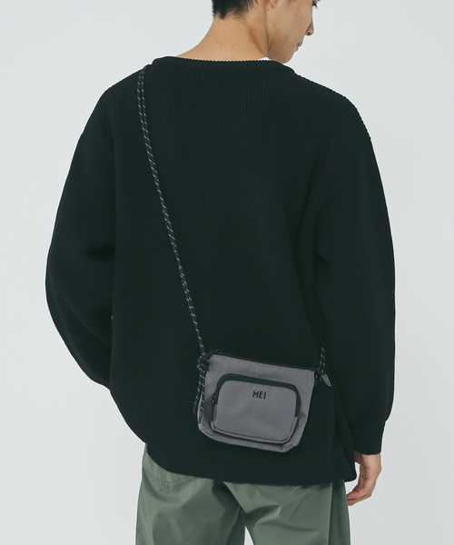 ちょっとしたお出かけに最適なサイズ感【デザイン】フロントのブランドロゴ刺繍が印象的なサコッシュ、ミニショルダーバッグ。メインポケット+フロントにサブポケットがついており小ぶりながら収納を分けられる点が優秀。開口部はファスナー付きで落下防止ができお出かけに使いやすい。ドローコードで長さを調節でき余った紐を垂らすとアクセントになります。ユニセックスでお使いいただける為、ちょっとしたプレゼントにも最適です。【素材】ポリエステル【MEI / メイ】アメリカ カリフォルニア州の海岸に広がるサーフシティ “Huntington Beach”【MEI】はスポーツとカルチャーが入り混じるこの地をベースに発信されるブランドです。カリフォルニアに広がるアウトドア・サーフスタイルのエッセンスと、時代と共に進化し続けるファッション・カルチャーをベースに あらゆるインスピレーションを掛け合わせたプロダクトは、ブランドの持つ独創的なプリントと多彩なカラーパレットで彩られ デザイン性・機能性を兼ね備えたタウンユースアイテムとして様々なシーンで活躍しています。