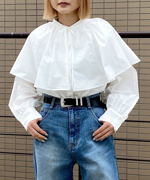 大きなケープが印象的な着映えブラウスケープは取り外しができ、ベーシックなシャツとしても着用できる2WAYアイテムです。適度なハリ感のあるコットン素材を使用。裾はインでもアウトでも着ていただける丈感です。〈注意事項〉・サンプルにて撮影をしておりますので、実際の商品とは素材や仕様・加工・サイズ等が若干異なる場合がございます。・モニター・環境等により実際の商品と色味が多少異なって表示される場合がございます。予めご了承をお願いいたします。・撮影環境により、光の当たり具合で色味が違って見える場合があります。あらかじめご了承下さい。▼気になるアイテムは《お気に入り登録》がおすすめです!完売カラーの再入荷情報、セール情報、ラスト1点の通知を受け取ることができます!▼《ブランドのお気に入り登録》で新商品や再入荷などのお得な情報をいち早くお知らせします。