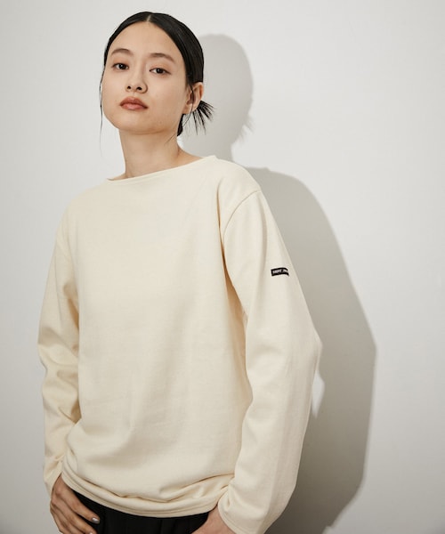 ◆2023-24秋冬◆ ADAM ET ROPE' FEMME 【Material】 コットン:100% 【Design】 セントジェームスの定番中の定番。ボートネック・長袖のシャツの原型は、ノルマンディー地方の漁師やヨットマン等の船乗り達が着ていたもので、実用的に考えられた素材やスタイルが特徴。目のしっかりとしたコットン100%素材で、マシンウォッシャブルが可能なのも嬉しいポイント。着込んでいくことによって風合いも増し、肌に気持ちよく馴染む一着。 【Color】 ブラック、オフホワイト、ピンク(3色展開) [SAINT JAMES/セントジェームス] 1889年、フランス北部ノルマンディー地方にあるセントジェームス市に創設。モン・サンミッシェルの干潟の牧草で育った羊からとれる良質の羊毛は、地元の漁師や船乗りたちの大切な仕事着であるマリンセーターを生み出し、実用性を備えた現在のセントジェームスのシャツの原型となっている。セントジェームスで代表されるコットンボーダーシャツは、100年以上にも及ぶ伝統を守り続けており、流行に左右されない不朽のスタイルと高い品質が、今もなお世界中の人々に愛されている。 --------------- ■メーカー品名 SOLID --------------- ■メーカーカラー表記(JUN表記) NOIR(ブラック) ECRU(オフホワイト) DRAGON(ピンク) --------------- ■メーカーサイズ表記(JUNサイズ表記) T3(1) --------------- ※洗濯回数や経年数にもよりますが、着丈・袖丈ともに縦に2センチ前後縮む可能性がございます。 ※すべて先染めの糸によるジャージーのため、染色時間の違いにより、同サイズ表示のシャツでも色によって若干のサイズの違い(1センチ前後)や、洗濯による縮み具合が異なる場合がありますのでご了承下さい。 ◇モデル情報 身長:163cm size:1
