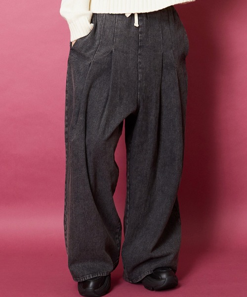 トレンドのタック入りのバギーシルエットで製作したワイドストレートパンツ。スウェット素材のスウェットパンツに加え新たにスラックス素材のモデル、デニム素材のモデルも追加致しました。ブラック,ホワイト,スミクロ,グレーがスウェット生地です。ブラック系1がスラックス素材です。ブルー系1.ブルー系2.ブルー系3.その他1,その他2,その他3がデニム生地です。スラックス生地とデニム生地のモデルは裾が断ち切りではなくなっています。タックを2つ入れることでカジュアルなスウェットパンツにスラックスパンツの要素を入れて着用時のシルエットに変化をつけています。定番化しているオーバーサイズのさらに上を行くボリュームシルエットに仕上げています。裾は溜めて履くとが今っぽい着こなしが可能です。通常のオーバーサイズでは定番化してしまって他の方との差別化が難しいかと思いますが、こちらのワイドパンツでしたら差別化も可能かと思います。カラーはブラック、フェード感のあるスミクロ、ホワイト、古着でも人気な杢グレーの4色展開です。ベーシックなブラックのスラックス素材もご用意がございますので合わせてご検討ください。ウエストはゴムのイージー仕様ですのでどなたでも着用可能です。Unrelaxingではバギーパンツやハカマパンツを何度もリリースしているので是非そちらもご検討ください。今期は新たにジーンズ素材のパンツを追加致しました!ノンウォッシュ、ワンウォッシュ、ケミカルウォッシュの三タイプのご用意です。インディゴブルーに加え、古着でも近年人気の高まっているブラックデニムタイプの2パターンです。ケミカルウォッシュは癖のあるデザインながらもコーデの主役にもなるおすすめのカラーです。通常のワイドパンツとはまた違った印象のパンツなのでモードなスタイリングやストリートなスタイリングにも◎トレンド感ある90sを彷彿させるパンツですので今の気分のコーデにぴったりです。スウェット素材のパンツはリラックス感のあるパンツですので外でも家の中でも着用できるので便利なパンツです。タックを入れることによって部屋着になりすぎないようにデザインされています。コーディネートも様々なものに合わせやすく、古着のTシャツやレザージャケットやニット等と合わせたストリートやモード感あるのスタイリングに大活躍間違い無し。シンプルなジャケットやダウンジャケットにも合わせやすい一着です。別売りにて展開しているオーバーサイズパーカーとハーフジップスウェットとセットアップで着こなすのもおすすめです。ウエストはゴムを施したイージー仕様です。伸縮するため、負担の無い快適な着用感でストレスのない着心地です。