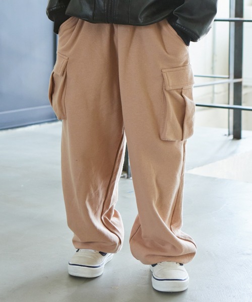 【サラッとスウェット】 ボリューム感のあるシルエットがおしゃれなカーゴパンツがスウェット素材で新登場です。 裾にゴムの入った仕様なのでお子様にも動きやすく、秋冬のおしゃれにピッタリなアイテムです。 【スタイリング】 インパクトのあるワイドなシルエットが今年らしい着こなしになる1着。 裏毛を使用しているのでお手入れしやすく、秋から春先まで長く着回しして頂ける今季オススメのボトムです。 生産時期により色味が若干異なる場合がございます。ご了承ください。 【ポケット】 あり(両サイド、脇2つ) 【伸縮性】 少しあり 【透け感】 なし 【クリーニング】 洗濯機洗い可(ネット使用) 【裏地】 なし