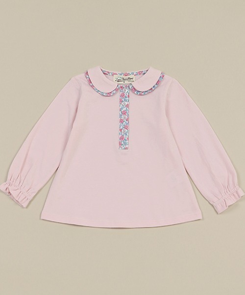 小花柄のコンビネーションで表情豊かに仕上げたブラウスです。コットン素材のナチュラルな風合いは残しつつ、きちんと感を演出できる優秀アイテム。袖にゴムを入れており、女の子らしいシルエットまで楽しめます。スカートやジャンパースカートと合わせたスタイリングがおすすめです。【透け感】透けない【生地の厚さ】普通【伸縮性】あり【裏地】なし【ポケット】なし