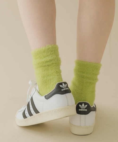【ふわふわシャギーのあったか靴下】ふわふわとした起毛感のある表情がシーズンライクな足元を演出してくれるシャギー生地で仕立てた靴下。暖かく柔らかなが着心地なので、ルームソックスとしても重宝します。くすみがかったニュアンスカラーがアクセントの効いた足元を演出してくれますよ◎#防寒グッズ※商品画像は、光の当たり具合やパソコンなどの閲覧環境により、実際の色味と異なって見える場合がございます。予めご了承ください。※商品の色味の目安は、商品単体の画像をご参照ください。▼お気に入り登録のおすすめ▼お気に入り登録商品は、マイページにて現在の価格情報や在庫状況の確認が可能です。お買い物リストの管理に是非ご利用ください。