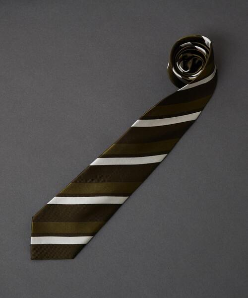 上質なシルクを使い、シックなカラーリングのストライプ柄で仕上げたネクタイ。 エレガントな佇まいのVゾーンを演出してくれます。 8cm巾×143cm