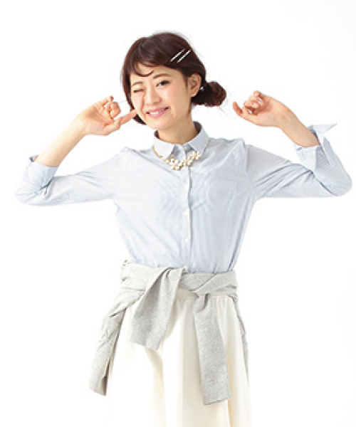 サックスとネイビーの2色展開。使い勝手の良い、合わせやすいベーシックなシャツです。袖をめくって、カットソーやTシャツの上から羽織るのも春らしい着こなしです。