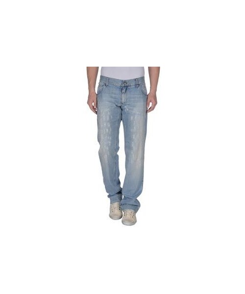 DOLCE & GABBANA Denim pants. denim, solid color, worn effect, faded effect, mid rise, dark wash, front closure, button closing, zip, multipockets, logo detail, straight leg. 99% Cotton, 1% Elastane