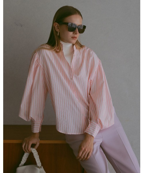 たっぷりとギャザーを入れたボリュームスリーブがポイントの華やかなシャツブラウス 高めのスタンドカラーと、肩に入れたギャザーのデザインがクラシカルで女性らしい印象に。 さらりと軽く柔らかい生地でヒップまで隠れる少し長めの着丈です。 1枚着用するだけで春らしく着映えするアイテムです。 ーーーーーーーーーーーーーーーーーーー 【付属品】 スペア釦11.5mm×1個 【洗濯時の注意事項】 液温は40℃を限度とし、手洗いによる洗濯処理が可能です 漂白処理はできません タンブル乾燥は出来ません 日陰のつり干しがよい 底面温度110℃を限度とし、スチームなしでアイロン仕上げができます 石油系溶剤(蒸留温度150℃~210℃,引火点38℃~)での弱いドライクリーニング処理ができます 非常に弱い操作のウエットクリーニングができます ーーーーーーーーーーーーーーーーーーー ▼商品のお気に入り登録 お気に入りアイテムの再入荷や残り1点の通知を受け取ることが出来ます ▼ブランドのお気に入り登録 新作アイテムの入荷や人気アイテムの再入荷、 タイムセールやクーポンなど、いち早くブランドのお得な情報を受け取ることができます ーーーーーーーーーーーーーーーーーーー ※画像の商品はサンプルです。 ※商品を使用前に、タグ等に記載されている「取り扱い上の注意書き」、「洗濯表示」を必ずご確認ください。 ※商品画像は、光の当たり具合やパソコンなどの閲覧環境により、実際の色味と異なって見える場合がございます。 ※商品の色味は、スタジオ撮影の画像をご参照ください。 ※着丈は弊社寸法方法によりネックポイントから採寸しております。