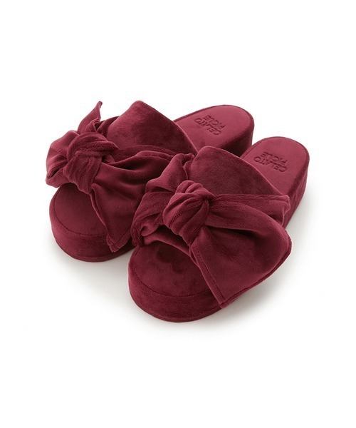 【大きなリボンと厚底仕様でスタイル良く魅せるルームシューズ】 【Design/Styling】 マットな質感のベロアが大人リッチなニュアンスを放つルームシューズ。大きなリボンをアクセントに、厚底仕様なのでおうちの中でもスタイルアップが叶います。色はグレーと、こっくりと深いワインレッド。同シリーズのバニティポーチもご用意しているほか、アーバンチェリー柄のルームウェアと相性のいいアイテムです。 ※照明の関係により、実際よりも色味が違って見える場合があります。 またパソコン・スマートフォンなどの環境により、若干製品と画像のカラーが異なる場合もございます。予めご了承ください。 商品の色味は、商品単品画像をご参照下さい。 ※商品画像はサンプルのため、色味やサイズ等の仕様に変更がある場合がございますので、予めご了承ください。