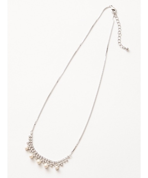 存在感がありながらも華奢な雰囲気を持ち合わせたネックレス。小ぶりなパールの大きさに合わせた華奢な連爪のビジューが絶妙なバランスです。 センターのモチーフが際立つように、サイドのチェーンはすっきりとした細身のチェーンを使用しています。 アジャスターで長さの調整が可能なので、ネックが詰まったトップスともバランス良く合わせられます。 きれいめなワンピースやドレスと好相性のアイテムです。 お揃いのラウンドパールイヤリング(品番:0354-2-35500)と合わせるとより華やかにまとまります。 ※照明の関係により、実際よりも色味が違って見える場合があります。 またパソコン・スマートフォンなどの環境により、若干製品と画像のカラーが異なる場合もございます。 予めご了承ください。
