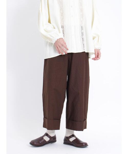 ------------------------------ 毎日、かわいく、ナチュラルを着よう 2023 AUTUMN もうすぐ本格的な秋が到来。 ちょっとそこまでのデイリーウェアとしても、 週末のお出掛け服としても使える ナチュラル派さん必見のアイテムが完成しました。 あると嬉しい機能付きです。 ------------------------------ 太幅なロールアップがポイントになったマルチスタイルツイルパンツ。 撥水加工が施されたハリ感のある生地を使用。ゆったりとしたワイドシルエットで、気になるレッグラインもさりげなくカバーしてくれます。 ベーシックな無地タイプで着回し力も高く、ワードローブの定番アイテムとしても重宝しそう◎ 【その他採寸】 F ウエスト:[ゴム仕様]64cm